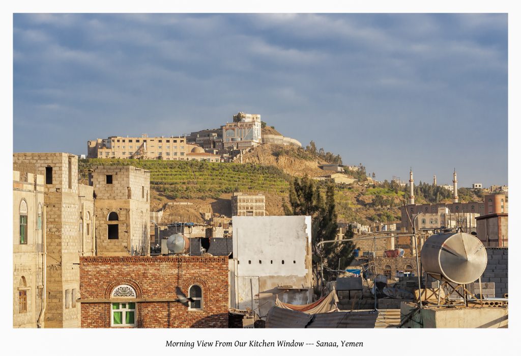 Below, the view every morning at breakfast from the kitchen of my permanent lodgings in Sanaa: