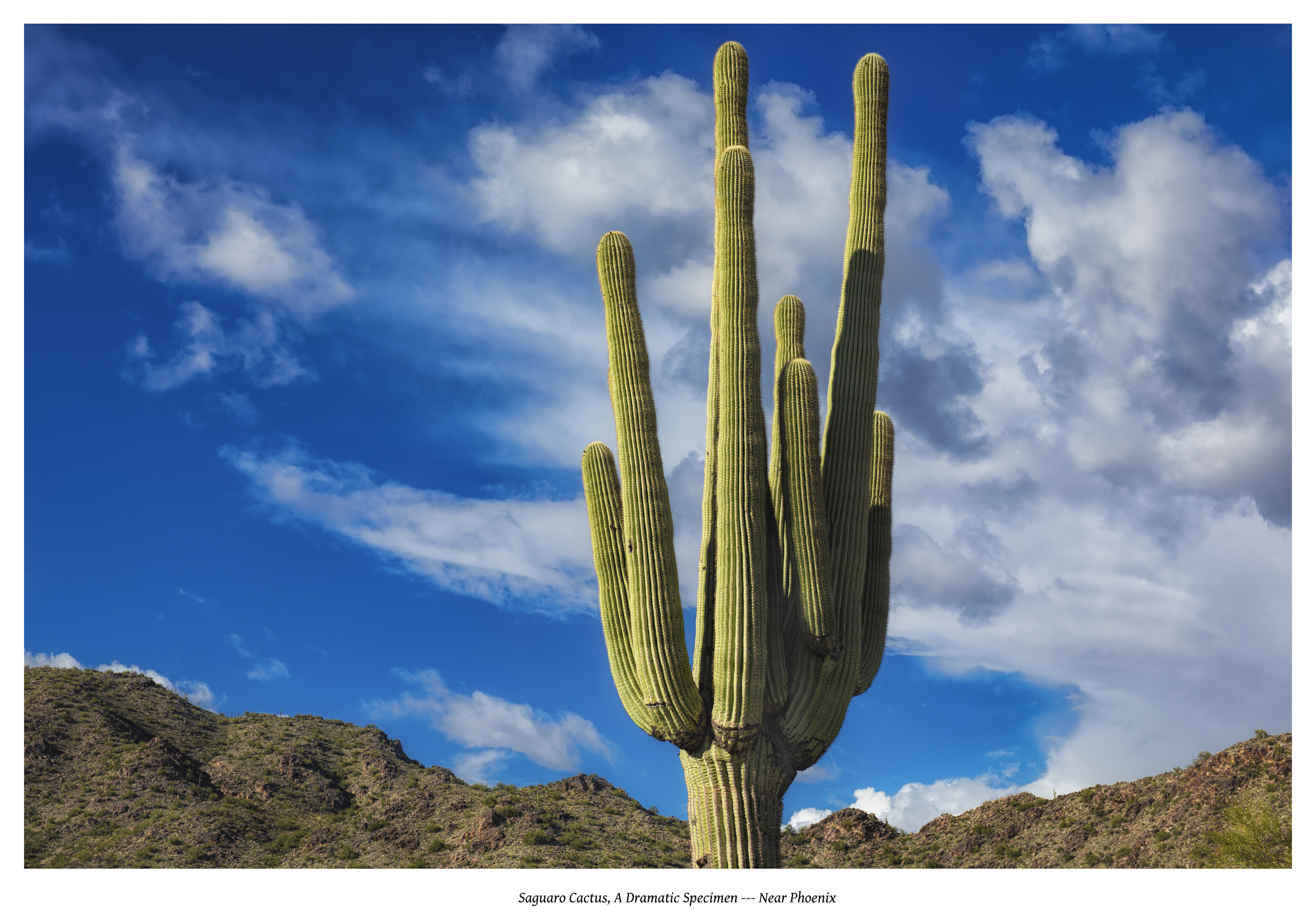 The Saguaro Cactus and the Grand Canyon — each is an intimidating subject. They are emblems of the Arizona territory, represented copiously in diverse media: oil paintings, photographs, refrigerator magnets and t-shirts to mention just a few examples. The saguaro grows only here; the grandest canyon on earth by the logic of superlatives exists only here, so one approaches these motifs humbly and with much trepidation.