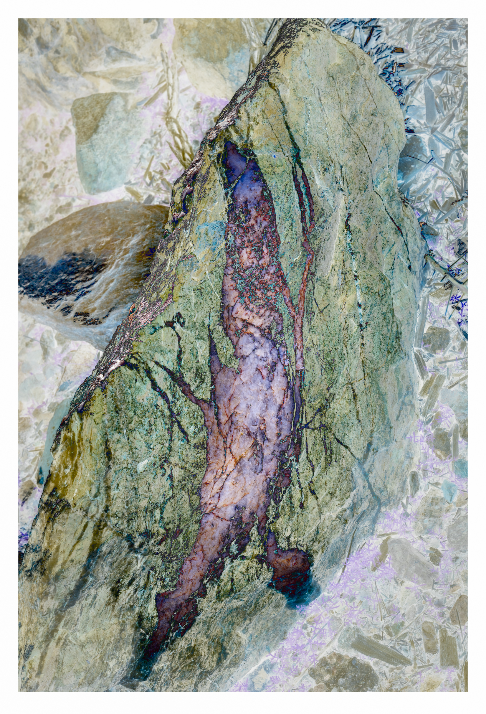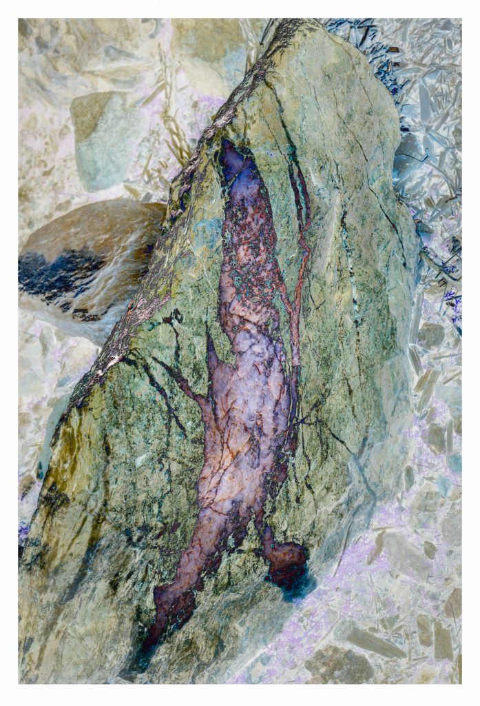 An animal form emerged from the boulder during the processing of this photograph — something exotic, primordial, an inhabitant of an ancient ocean perhaps. Or it might be one of countless mineral abstractions I have seen, some of which seem to morph into lifelike shapes.