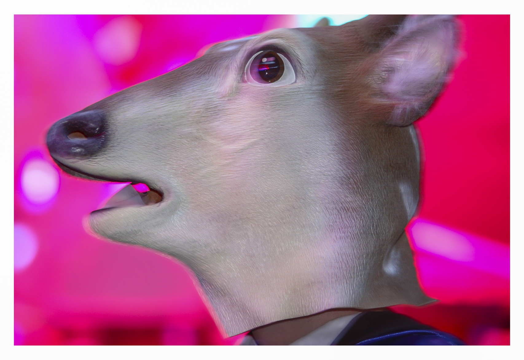 The dictionary and thesaurus entries barely describe what we see in this image of a man wearing a giant deer head, taken in the United States at a regional version of the Beaux Arts Ball.