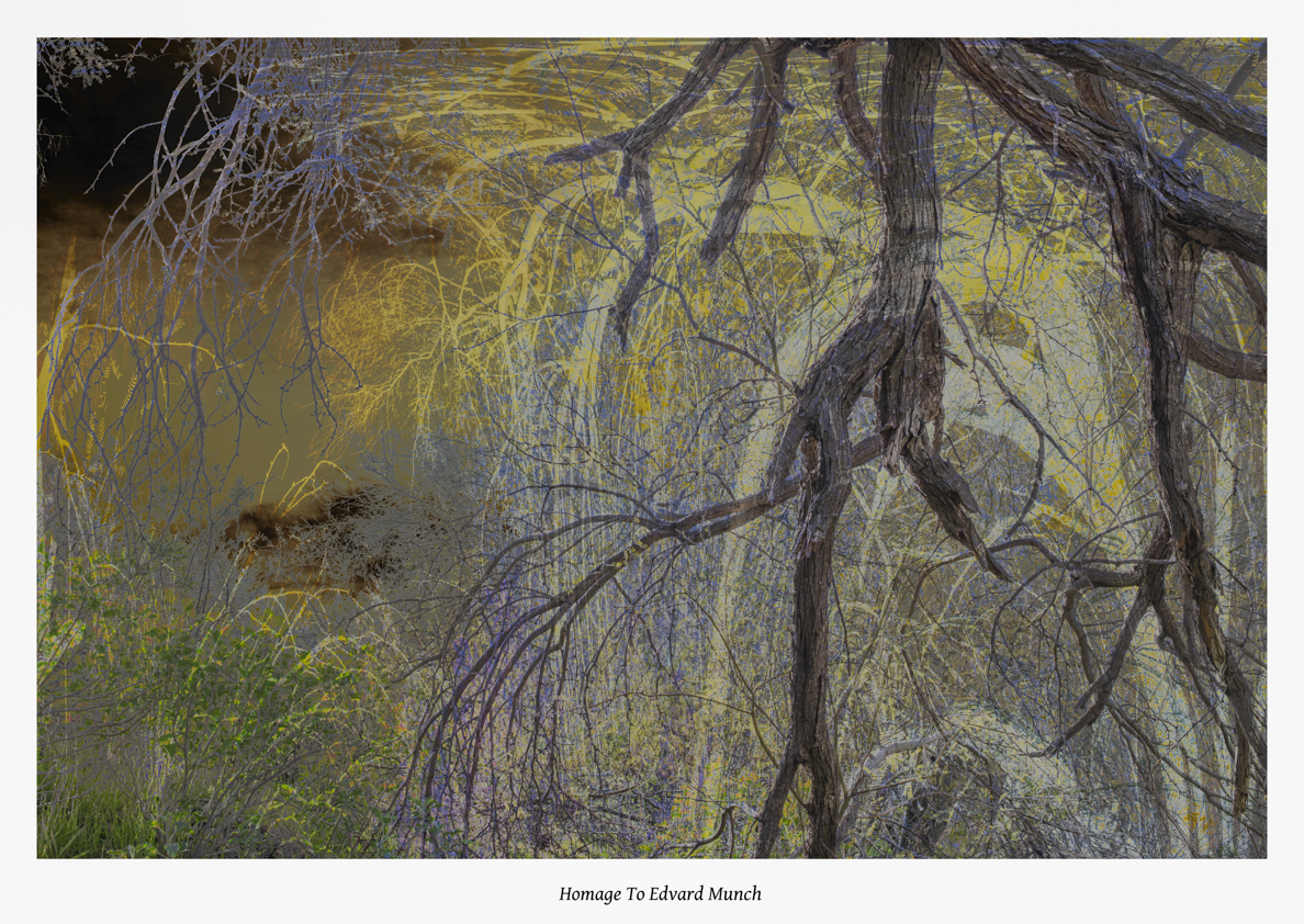 By the time of his collapse Munch had created many iconic images, the most famous and most reproduced is The Scream, its subject in the foreground one androgynous human being, face twisted, hands pressed over its ears in what appears a vain attempt to block out a swirling and agitated world. Critics and art historians believe the picture encapsulates Munch’s own anxious temperament and also the anxieties of our modern age as a whole. Edvard described the revelation leading up the painting this way: