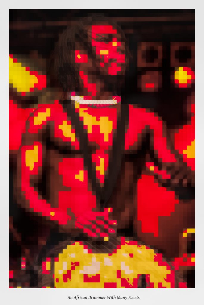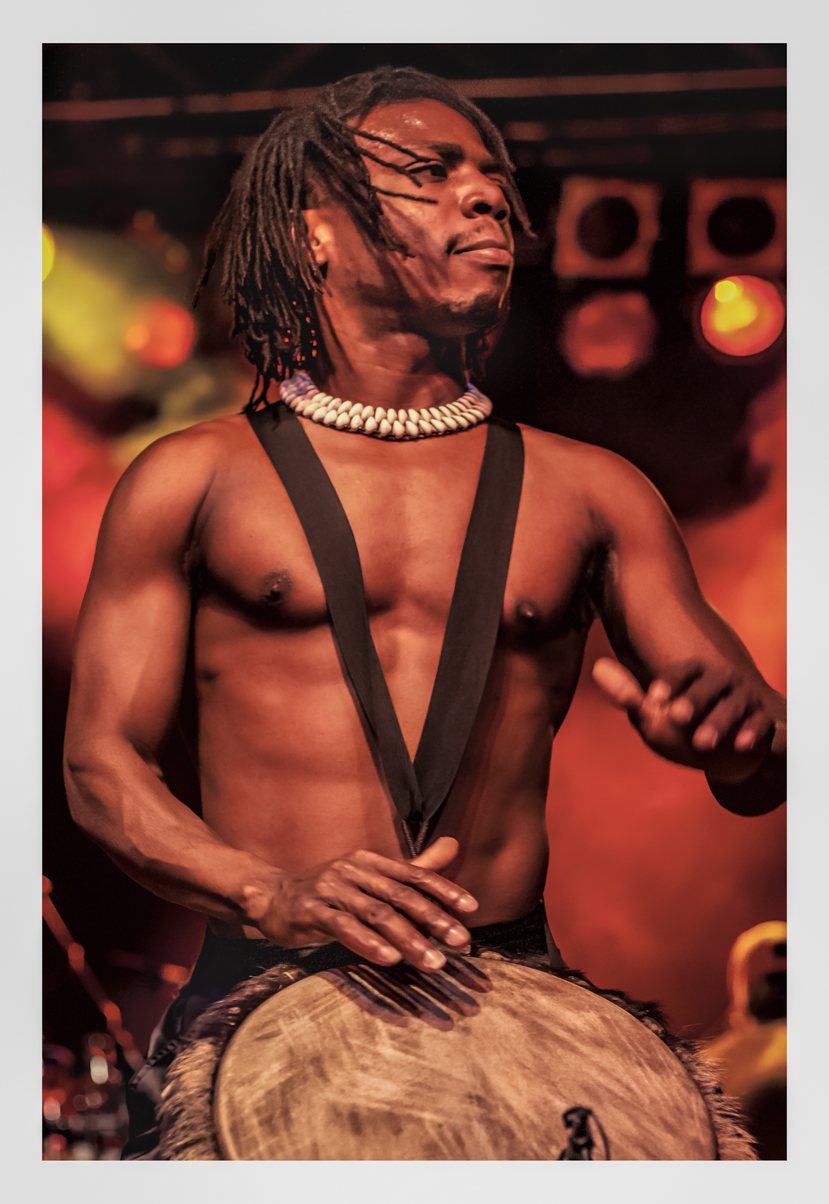 I watched this man work up-close live onstage through many potent hours. He performed shirtless, barefoot and dread-locked, played mixed drums with the power of three people. Above I peeled back his public face and surface appearance, folding time and history aside, an attempt to reveal the iconic musician and archetype beneath.