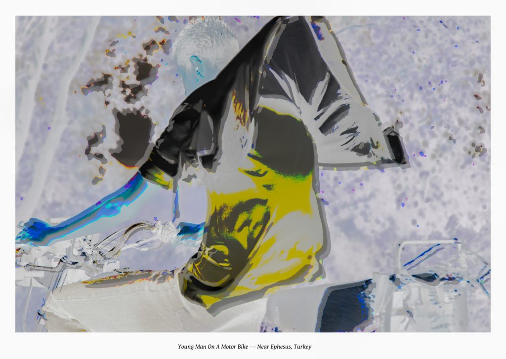 Ages ago I made a straightforward monochrome rendering of this photograph. The image above created recently expresses better the lightness of that afternoon by the Aegean Sea, in a higher emotional key — closer to the lived experience — which included lots of fun alloyed with a definite recklessness.