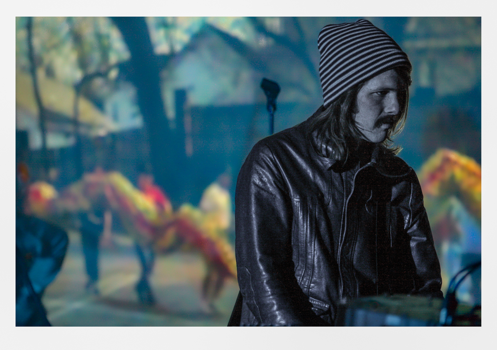 Deep into the evening, the fellow pictured below took the stage fronting a four-piece band. He excelled in the outrageous; the wildest of many wild performers, this singer definitely was not tame in his mind. However his voice, his lyrics and the music thundering from behind him failed to attract and excite a crowd. People began to form circles and light cigarettes. Attendees were still talking among themselves at high volume when our portrait subject #2 left the scene in a disgruntled mood.