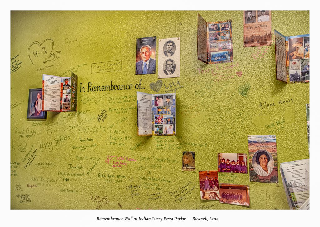 This wall-shrine I photographed at a pizza place owned by Indian immigrants in the Mormon hamlet of Bicknell. It is the only place open here at night excepting the Qwik-Stop, which also closes at 10pm. The restaurant serves many varieties of pizza-pie with curried toppings, has Southeast Asian television shows playing continuously; nevertheless it has become a gathering spot for students (particularly after high school football games) and older local people, many of whom live isolated on farms and ranches.